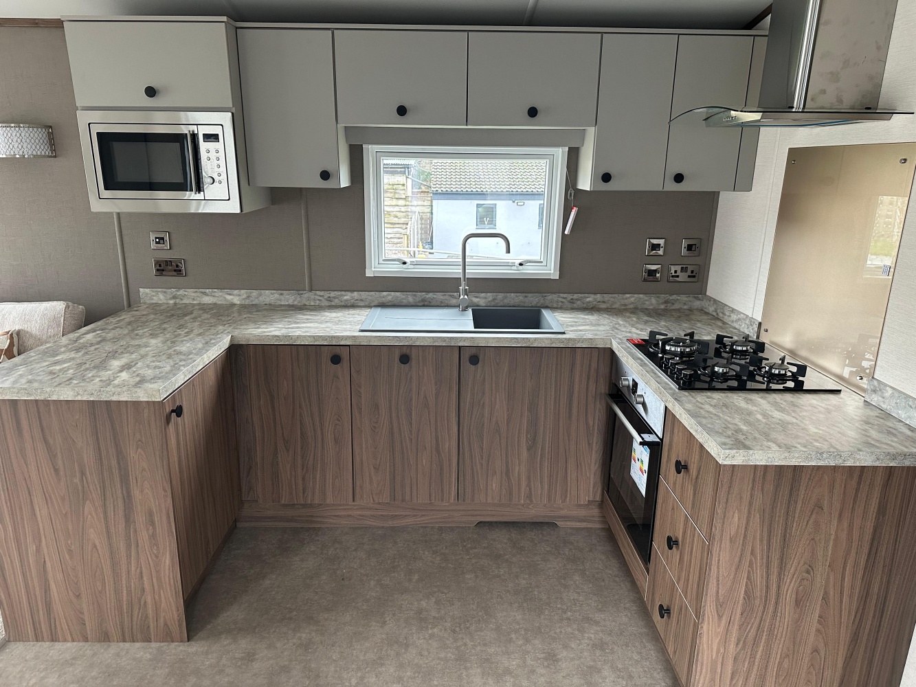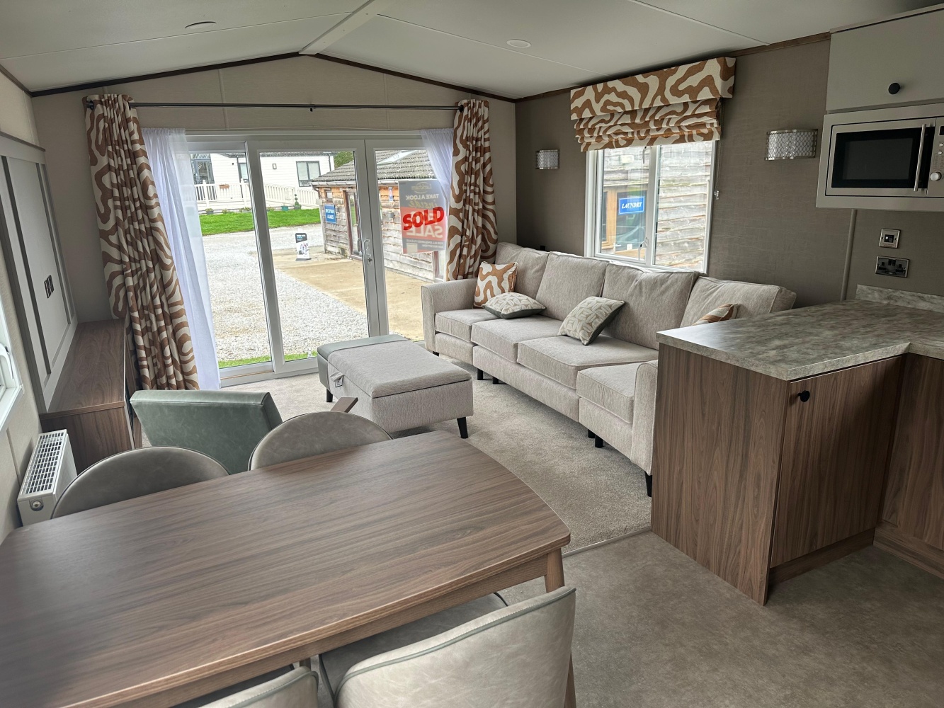 Step inside the brand-new Carrington and discover a holiday home designed for light, space and modern comfort. Panoramic windows and vaulted ceilings create a bright, airy lounge, while the open-plan layout flows effortlessly into a stylish walnut and pebble grey kitchen - a thoughtful new addition to the Carnaby range.
